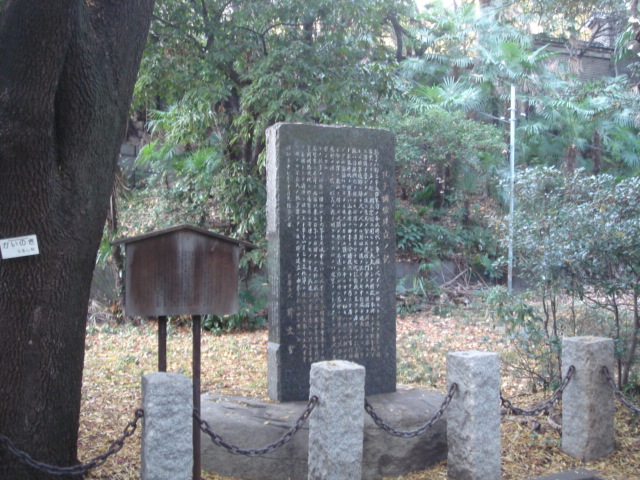 所在地 文京区後楽1-6-6 (小石川後楽園石垣) 江戸城外堀石垣を再利用した石積 左手築地塀の石垣の一部(プレート設置個所)は、江戸城鍛冶橋門北側外堀城趾(千代田区丸の内1丁目)から出土した石垣の石材を使い、本園の作られた江戸時代初期(17世紀初頭)の「打ち込みハギ」と呼ばれる石積の技法で再現しました。 石材には、備中(岡山県)成羽藩主山崎家の(山)をはじめ石垣を築いた大名を表す「刻印」や石割の際の「矢穴」が残っています。数字は発掘調査で出土したときつけた番号です。 所在地 文京区湯島3-20 実盛坂さねもりざか 『江戸誌』によれば「・・・湯島より池の端の辺りをすべて長井庄といへり、むかし斎藤別当実盛の居住の地なり・・・」とある。また、この坂下の南側に、実盛塚や首洗いの井戸があったという伝説めいた話が『江戸砂子』や『改撰江戸志』にのっている。この実盛のいわれから、坂の名がついた。 実盛とは長井斎藤別当実盛のことで、武蔵国に長井庄(現・埼玉県大里郡妻沼町)を構え、平家方に味方した。寿永2年(1183)、源氏の木曽義仲と加賀の国篠原(現・石川県加賀市)の合戦で勇ましく戦い、手塚太郎光盛に討たれた。 斎藤別当実盛は出陣に際して、敵に首をとられても見苦しくないようにと、白髪を黒く染めていたという。この話は『平家物語』や『源平盛衰記』に詳しく記されている。 湯島の”実盛塚”や”首洗いの井戸”の伝説は、実盛の心意気にうたれた土地の人々が、実盛を偲び、伝承として伝えていったものと思われる。 平成14年(2002)3月 文京区教育委員会 所在地 文京区湯島4・台東区 無縁坂むえんざか 『御府内備考』に、「称仰院前通りより本郷筋へ往来の坂にて、往古 坂上に無縁寺有候に付 右様相唱候旨申伝・・・」とある。 団子坂(汐見坂とも)に住んだ、森鴎外の作品『雁』の主人公岡田青年の散歩道ということで、多くの人びとに親しまれる坂となった。その『雁』に次のような一節がある。「岡田の日々の散歩は大抵道筋が極まっていた。寂しい無縁坂を降りて、藍染川のお歯黒のような水の流れこむ不忍の池の北側を廻って、上野の山をぶらつく。・・・」 坂の南側は、江戸時代四天王の一人・康政を祖とする榊原式部大輔の中屋敷であった。坂を下ると不忍の池である。 不忍の 池の面にふる春雨に 湯島の台は 今日も見えぬかも 岡麓(本名三郎・旧本郷金助町生まれ1877~1951・墓は向立2丁目高林寺) 昭和55年(1980)1月 文京区教育委員会 所在地 文京区湯島3-30 この歌は、石川啄木(1886~1912)の明治43年(1910)の作で、『悲しき玩具』に収められている。文字は、原稿ノートの自筆を刻んだ。 当時石川啄木は、旧弓町の喜之床(現本郷2-38-9・新井理髪店)の2階に間借りしていた。そして、一家5人を養うため、朝日新聞社に校正係として勤務し、二晩おきに夜勤もした。 夜勤の晩には、終電車で上野の広小路まで来たが、本郷3丁目行きの電車はもう終っている。湯島神社の石垣をまさぎりながら、暗い切通坂を、いろいろな想いを抱いて上ったことであろう。 喜之床での2年2か月の特に後半は、啄木文学が再興に燃焼した時代である。この歌は、当時の炊く朴の切実な生活の実感を伝えている。 文京区内で、最後に残っていた啄木ゆかりの家”喜之床”が、この3月18日に、犬山市の博物館「明治村」に移築、公開された。 昭和55年(1980)3月 文京区教育委員会 所在地 文京区湯島3-30-1 社殿は平成7年(1995)総檜木造りとして造営された。平成5年(1993)お木曳き(造営の開始)の神事が行われ、遷座祭(完成)まで2年7か月を要した。 祭神は菅原道真である。伝承によれば文和4年(1355)湯島の郷民が霊夢によって老松ノ下に勧請したといわれている。その後、文明10年(1478)に太田道灌が社殿を再興し、江戸時代になって、徳川家康はじめ歴代の将軍があつく庇護し隆盛をきわめた。かって、湯島天満宮は”湯島天神”として知られ鳥居前には町もでき人々の往来で賑わった。 青松が茂る神境に野梅が盛んに香り風雅に富んだ所として古くから名を知られ、その後江戸幕府の朱印地になり、林道春、新井白石等の多くの学者に文神とし崇められました。 境内の梅は一時枯れましたが、現在では、地元民の篤志により、数百本の梅樹が植えられ、2月から3月に行われる梅まつりにはみごとな花と香りで参拝者、鑑賞者を楽しませています。また梅園の中には、満天下の子女の紅涙をしぼらせた「婦系図」のゆかりの地として里見弴外16名の文筆家ら旧知関係者によって昭和17年(1942)9月7日に泉鏡花の筆塚が設立されました。 ・銅製表鳥居(都指定文化財) 寛文7年(1667)9月創建され、寛文11年(1671)修理した銘がある。下脚部に唐獅子頭部の装飾は鳥居としては特異なものである。 ・奇縁氷人石 嘉永3年(1850)10月江戸で初めて建てられたもので、右側面に「たづぬるかた」左側面に「をしふるかた」とある。迷子探しの石で都内でも貴重なものである。 平成9年(1997)3月 文京区 境内には『銅製表鳥居』、『奇縁氷人石』、